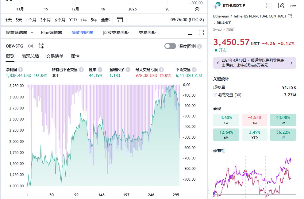 策略回测效果(时间周期:2H):
